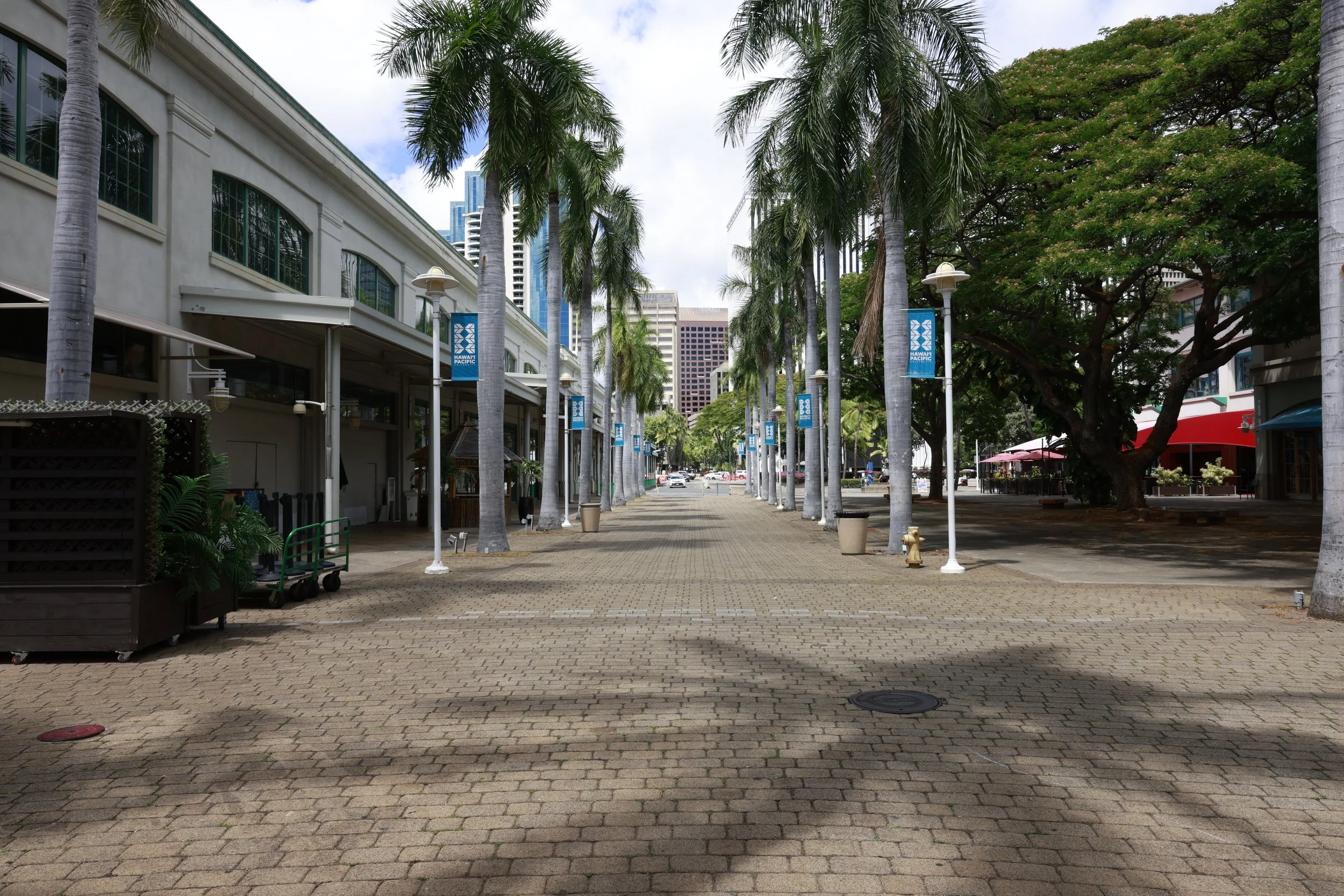 The opening scene of Season 3, Episode 5 took place at Aloha Tower. The banners on the light poles were changed to fit the scene and story.